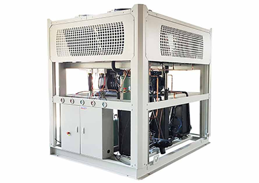 風冷自復疊式制冷機組制冷量較小,一般用于制藥業實驗時用。