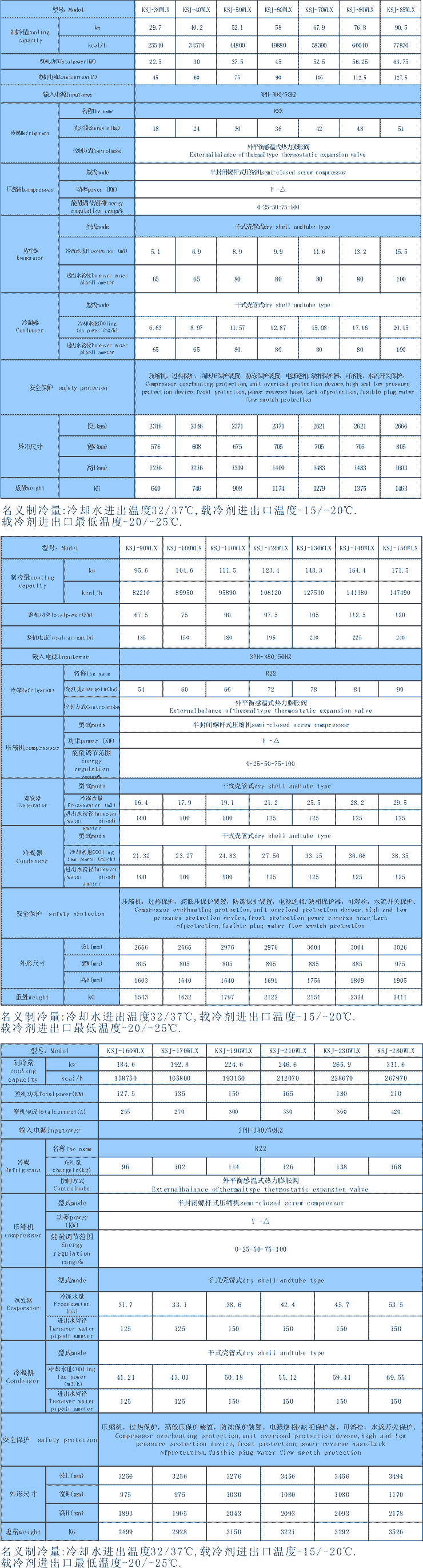 螺桿中低溫冷水機(jī)組參數(shù)